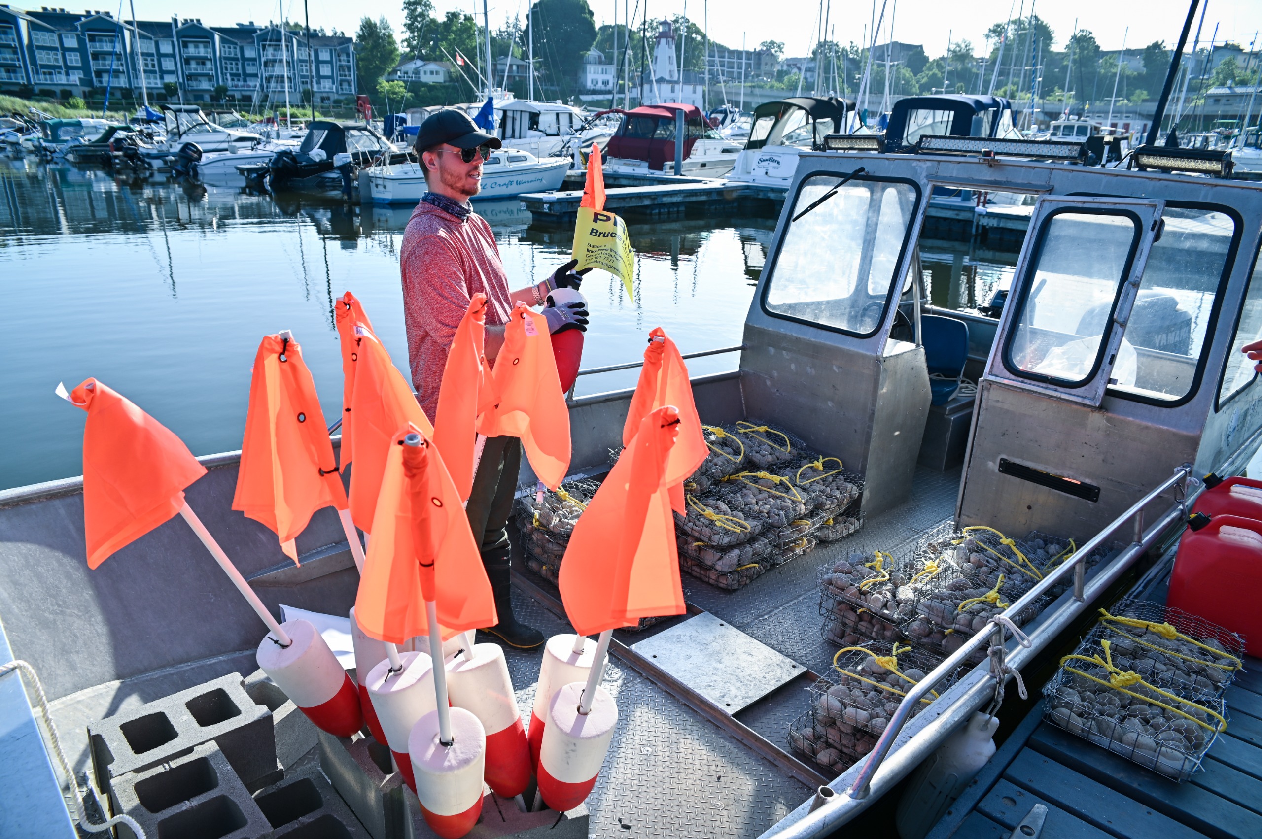Benthic invertebrates are small aquatic organisms that live on the bottom of lakes and rivers and include insect larvae, mussels, crustaceans, worms and snails. They are an indicator of ecosystems changing and play a role in nutrient cycling and the food web. As part of the Bruce C Project IA, benthic invertebrate sampling will continue in 2025 in Lake Huron. This work is being done to capture information about the current benthic invertebrate community, along with temperature and sediment sampling.